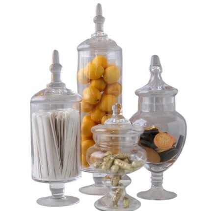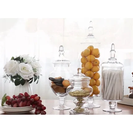 Transform any space with our Set of 4 Decorative Glass Apothecary Storage Jars, perfect for both practical storage and stylish